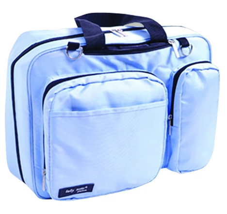 Pada bagiandepan tas terdapat saku yang dapat di gunakan perlengkpan bayi lainnya.